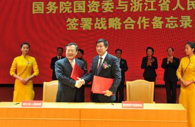 12月26日,國務院國資委與浙江省政府在杭州簽署《浙江省人民政府與國務院國有資產監督管理委員會合作備忘錄》,并共同舉辦浙江與中央企業合作洽談會,商定在“十二五”期間,共同推進中央企業與浙江進行深入和廣泛的戰略合作,充分發揮浙江區位優勢,促進多種所有制企業共同發展。國務院國資委主任、黨委書記王勇與浙江省委副書記、代省長夏寶龍代表雙方簽署合作備忘錄。浙江省委書記趙洪祝出席儀式并講話。國務院國資委副主任黃丹華、金陽,副秘書長郭建新出席簽字儀式。