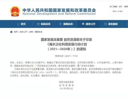 破解難點堵點 以需求定供給 促進海水淡化高質量發展 ——《海水淡化利用發展行動計劃(2021—2025年)》政策解讀 海水淡化利用是我國沿海地區、離岸海島緩解水資源供需矛盾、優化供水結構、強化開源補源的重要措施,但目前還存在進入網困難、技術滯后、激勵政策不匹配等問題,制約了海水淡化利用發展。為解決上述問題,國家發展改革委、自然資源部聯合印發了《海水淡化利用發展行動計劃(2021—2025年)》((發改環資〔2021〕711號,以下簡稱《行動計劃》)。