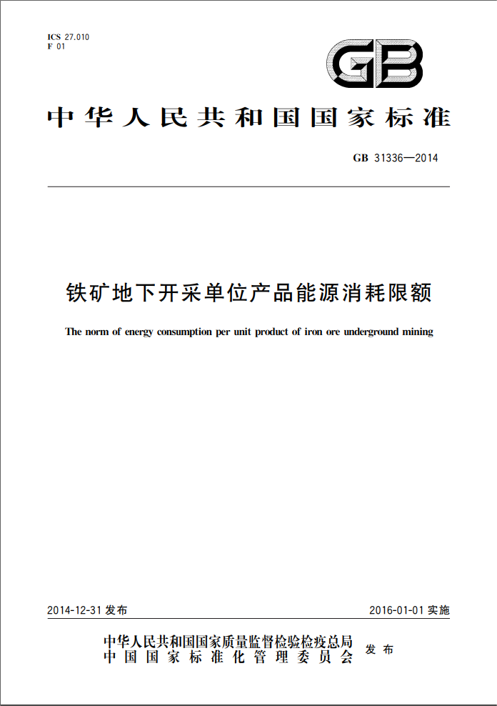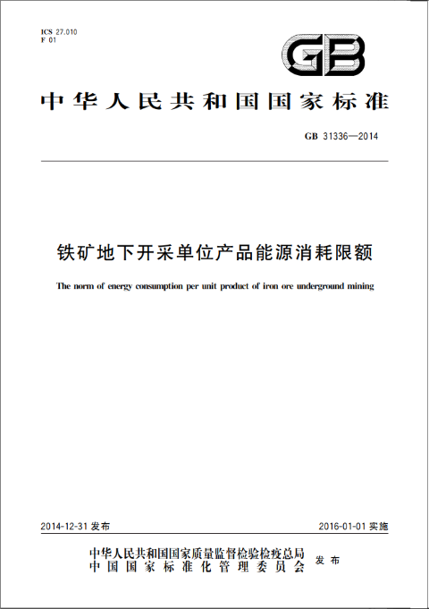 本標準適用于鐵礦地下開采單位產(chǎn)品能耗的計算、考核及對新建項目的能耗控制。