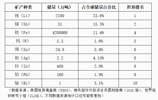 銻。玻利維亞是全球銻儲量最豐富的國家之一,根據美國地質調查局2016年統計數據,玻利維亞玻儲量占全球總儲量的15.5%。銻是我國24種戰略礦產之一,且不可再生,玻利維亞銻年產量約3000噸,僅有奧魯羅金銻礦有規模化開采,開發潛力較大。