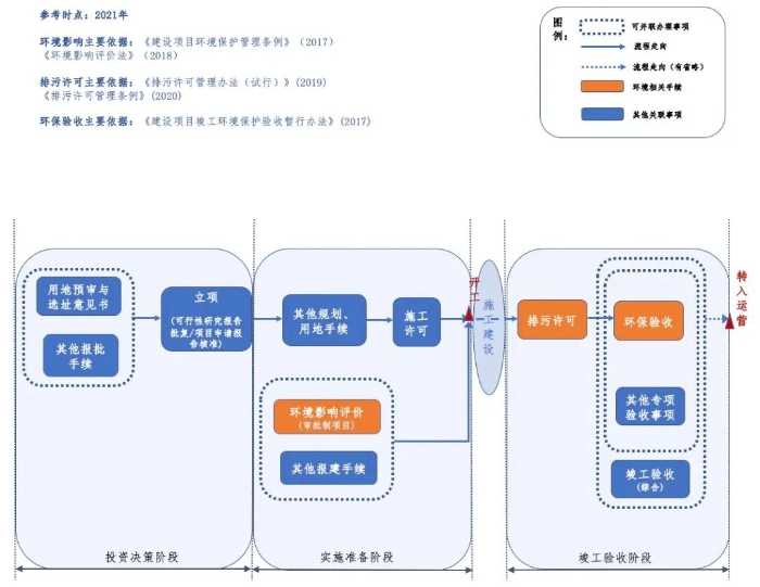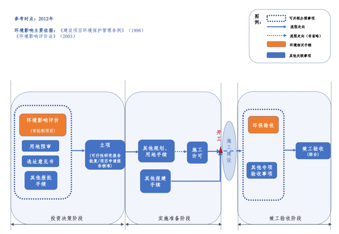 編者按 新中國成立以來,我國基礎(chǔ)設(shè)施投資建設(shè)取得了舉世矚目的成就,是國家經(jīng)濟社會發(fā)展的重要支撐,為人民生活水平的提高做出了巨大貢獻。改革開放以來,市場開始發(fā)揮配置資源的基礎(chǔ)性作用,為我國基礎(chǔ)設(shè)施的發(fā)展煥發(fā)了新的活力。據(jù)統(tǒng)計,我國基礎(chǔ)設(shè)施資產(chǎn)總規(guī)模在1990年排在全世界約第15位,2000年上升到第7位,2010年躍升為第3位,至2018年已居世界首位。 黨的二十大報告在回顧過去五年的工作和新時代十年的偉大變革中,充分肯定了基礎(chǔ)設(shè)施在經(jīng)濟社會中發(fā)揮的重要作用,報告指出,我國“建成世界最大的高速鐵路網(wǎng)、高速公路網(wǎng),機場港口、水利、能源、信息等基礎(chǔ)設(shè)施建設(shè)取得重大成就”。我國基礎(chǔ)設(shè)施多年來大規(guī)模的投資建設(shè)和存量資產(chǎn)的高速積累,是黨中央、國務(wù)院在建立社會主義市場經(jīng)濟體制背景下,關(guān)于投融資體制改革部署的重要成果。 項目前期工作手續(xù)的合規(guī)性要求,是基礎(chǔ)設(shè)施能夠發(fā)揮其應(yīng)有價值的重要前提,也是投融資體制改革關(guān)注的重點內(nèi)容之一。伴隨著政府職能轉(zhuǎn)變、深化“放管服”改革和擴大有效投資等重大決策的關(guān)鍵部署,我國工程建設(shè)項目審批制度不斷優(yōu)化和改革,基礎(chǔ)設(shè)施項目投資前期決策管理經(jīng)歷了復(fù)雜的演變進程,其合規(guī)性標準也在與時俱進、不斷完善。當前我國已進入基礎(chǔ)設(shè)施存量時代,存量資產(chǎn)項目前期工作手續(xù)的合規(guī)性是重要的盤活條件之一,部分合規(guī)性問題已成為新時代社會廣泛關(guān)注的焦點。本項專題研究立足投融資體制和項目審批制度變革的歷史背景,嘗試厘清基礎(chǔ)設(shè)施項目在立項、土地、規(guī)劃、環(huán)境、建設(shè)施工等方面主要前期工作的歷史變革脈絡(luò),梳理不同管理事項之間的邏輯關(guān)聯(lián),從這一視角提供基礎(chǔ)設(shè)施項目前期工作手續(xù)的合規(guī)性認識。本公眾號將研究報告的部分成果以系列文章的形式陸續(xù)刊發(fā),研究報告第一部分為背景與立項篇,第二部分為土地與規(guī)劃篇,第三部分為建設(shè)施工篇,本文是研究報告的第四部分(環(huán)境篇),供業(yè)界同仁參考。 基礎(chǔ)設(shè)施項目前期工作手續(xù)合規(guī)性研究(Ⅳ) 環(huán)境篇 張雪飛 伍迪 摘要:綠水青山就是金山銀山,基礎(chǔ)設(shè)施項目的建設(shè)可能會對環(huán)境產(chǎn)生影響,因此需要格外重視項目在環(huán)境保護方面的有關(guān)前期工作,具有代表性的手續(xù)事項主要包括環(huán)境影響評價、排污許可、環(huán)保專項驗收等。建設(shè)項目環(huán)境影響評價,是對項目實施后可能造成的環(huán)境影響進行分析、預(yù)測和評估,提出預(yù)防或者減輕不良環(huán)境影響的對策和措施,進行跟蹤監(jiān)測的方法與制度。排污許可,是環(huán)境保護主管部門依排污單位的申請和承諾,通過發(fā)放排污許可證法律文書形式,依法依規(guī)規(guī)范和限制排污單位排污行為并明確環(huán)境管理要求,依據(jù)排污許可證對排污單位實施監(jiān)管執(zhí)法的環(huán)境管理制度。如果說環(huán)境影響評價制度是建設(shè)項目的環(huán)境準入門檻,那么排污許可制度是企事業(yè)單位生產(chǎn)運營期排污的法律依據(jù)。本文聚焦基礎(chǔ)設(shè)施項目環(huán)境方面的手續(xù),對手續(xù)主要內(nèi)容和制度演進進行系統(tǒng)梳理,供業(yè)界參考。 關(guān)鍵詞:基礎(chǔ)設(shè)施;合規(guī)性;環(huán)境影響評價;排污許可;政策演進 當前我國基礎(chǔ)設(shè)施項目在環(huán)境方面前期工作主要包括環(huán)境影響評價和排污許可等相關(guān)手續(xù),此外,在工程項目的竣工驗收階段,還包括環(huán)保方面的專項驗收等。 ——開展建設(shè)項目環(huán)境影響評價,自上世紀末《建設(shè)項目環(huán)境保護管理條例》開始施行以來就一直都是基礎(chǔ)設(shè)施項目在環(huán)境方面前期手續(xù)的核心工作。環(huán)境影響評價是對規(guī)劃和建設(shè)項目實施后可能造成的環(huán)境影響進行的分析、預(yù)測和評估,并提出預(yù)防或者減輕不良環(huán)境影響的對策和措施,進行跟蹤監(jiān)測。實行建設(shè)項目環(huán)境影響評價制度,最主要目的是為了防止建設(shè)項目產(chǎn)生新的污染、造成生態(tài)環(huán)境的破壞。 ——排污許可制度,從2016年11月開始施行,形成了與環(huán)境影響評價制度的有機銜接。如果說環(huán)境影響評價制度是建設(shè)項目的環(huán)境準入門檻,那么排污許可制度是企事業(yè)單位生產(chǎn)運營期排污的法律依據(jù)。為實現(xiàn)從污染預(yù)防到污染治理和排放控制的全過程監(jiān)管,新建項目必須在發(fā)生實際排污行為之前申領(lǐng)排污許可證,環(huán)境影響評價文件及批復(fù)中與污染物排放相關(guān)的主要內(nèi)容應(yīng)當納入排污許可證,其排污許可證執(zhí)行情況應(yīng)作為環(huán)境影響后評價的重要依據(jù)。 ——環(huán)保驗收是基礎(chǔ)設(shè)施項目竣工后,建設(shè)單位按照國務(wù)院環(huán)境保護行政主管部門規(gu