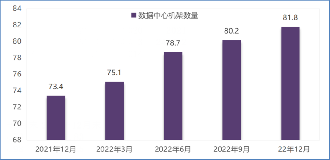 圖3 三家基礎電信企業數據中心機架發展數量(單位:萬個)