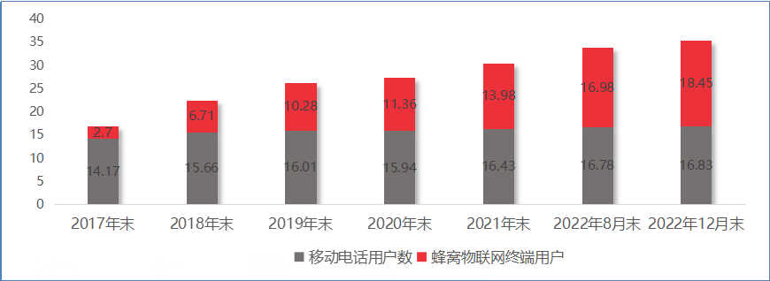 圖4 2017-2022年物聯網用戶情況(單位:億戶)
