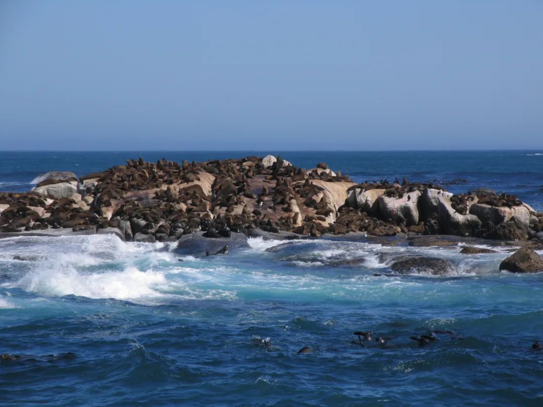 海豹島是開普敦豪特灣海域中的一個長條形礁石島。每天上千只海豹成群結隊地登上礁石棲息,這些海豹屬于開普軟毛海豹,是南部非洲的本土品種,繁殖于南非及納米比亞的海岸線上,壽命20~40年。來往的漁民沒有對這些唾手可得的漁貨動心,而是自發性地進行保護,附近海域禁漁,嚴禁旅游觀光人員登島,避免干擾其生活環境。