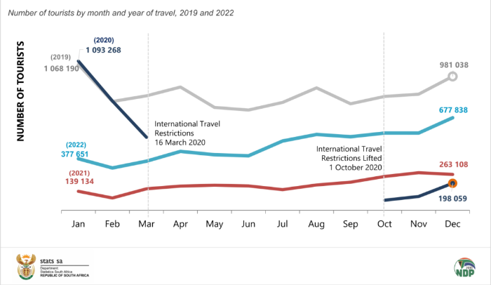 圖1 南非共和國2019~2022年月度游客量統計變化 來源:南非統計局