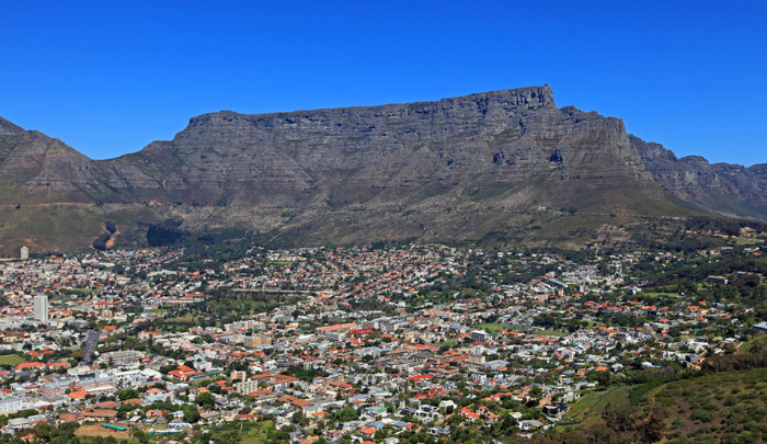 桌山,因一座臨海的山峰頂如桌面而得名,是“世界新七大自然奇觀”之一,最高海拔1088米。桌山擁有世界上最大規模的瀕危物種,主要植被類型是瀕危的半島砂巖凡波斯和極度瀕危的半島花崗巖凡波斯。桌山植被是開普植物保護區的一部分,估計有2285種植物(超過1100種是鄉土植物物種)被記錄在冊,最常見的野生動物是蹄兔,還有豪豬、貓鼬、蛇和龜等。