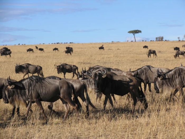 圖8 馬賽馬拉草原大遷徙中的角馬群(攝影:陳子琦)