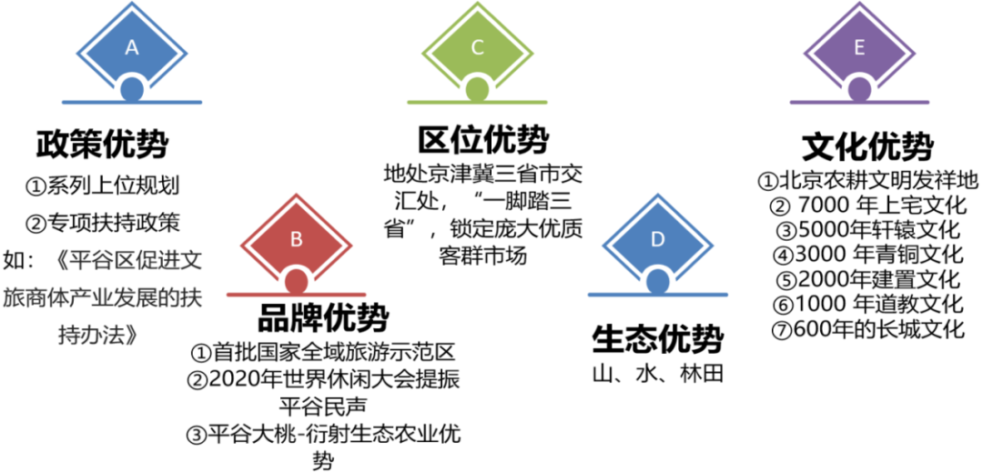 《平谷區分區規劃(國土空間規劃)(2017年-2035年)》和《平谷區國民經濟和社會發展第十四個五年規劃和二〇三五年遠景目標綱要》兩項上位規劃均明確提出平谷區將構建以農業科技創新、特色休閑旅游和綠色智慧商貿物流為主的綠色產業體系,意味著旅游業發展將比以往任何一個時期更容易獲取政府在土地、資金、技術、財稅等方面的政策支持,如2022平谷區出臺《平谷區促進文旅商體產業發展的扶持辦法》文件扶持旅游業重點項目發展,對工業、農業、體育、現代服務業等產業與文化和旅游業深度融合的項目,按照項目審定投資額的30%給予項目主體資金獎勵。