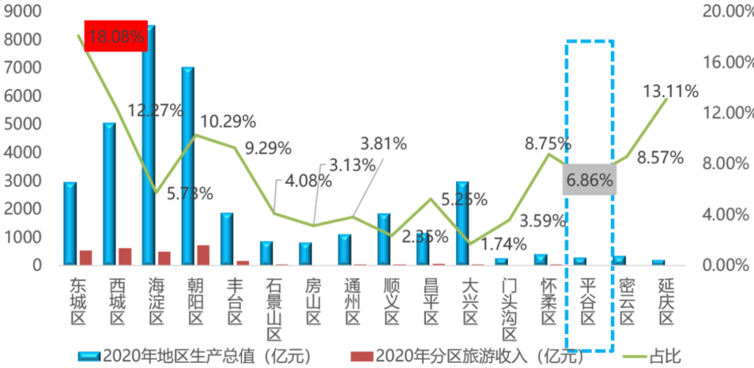 數據來源:2020年北京市分區旅游數據統計報告、2021年北京市統計年鑒。