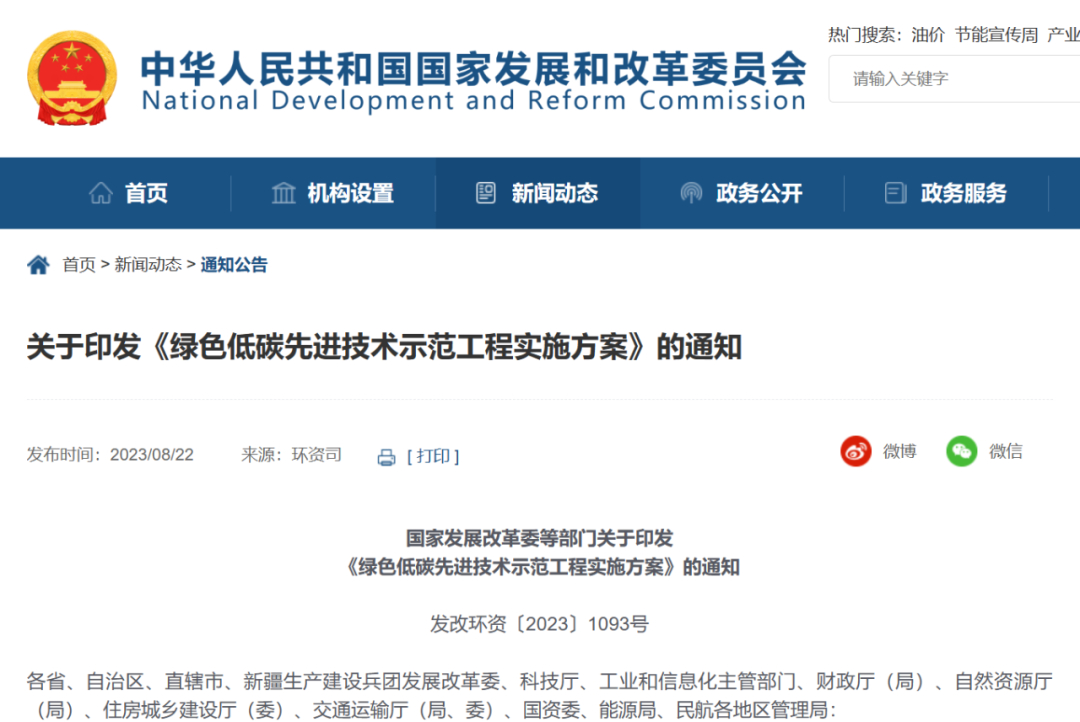 綠色低碳先進技術的研發(fā)、推廣和應用是推動如期實現碳達峰碳中和目標的關鍵一環(huán)。在習近平總書記提出碳達峰碳中和目標三周年即將來臨之際,國家發(fā)展改革委等十部門聯(lián)合印發(fā)《綠色低碳先進技術示范工程實施方案》(發(fā)改環(huán)資〔2023〕1093號,以下簡稱《方案》),明確提出了綠色低碳先進技術示范工程重點方向、保障措施、組織實施方式等,指向清晰、措施有力、操作性強,對推進經濟社會發(fā)展全面綠色低碳轉型,加快綠色低碳技術產業(yè)化進程具有十分重要的意義。 01 開展技術示范工程建設是加速綠色低碳轉型的有力舉措 自碳達峰碳中和目標提出以來,我國將應對氣候變化作為國家戰(zhàn)略,納入生態(tài)文明建設整體布局和經濟社會發(fā)展全局,建立碳達峰碳中和“1+N”政策體系,已構建起目標明確、分工合理、措施有力、銜接有序的碳達峰碳中和政策框架。各地區(qū)各部門、各行業(yè)各企業(yè)圍繞碳達峰碳中和目標,落實政策措施,在能源、產業(yè)、交通、建筑等重點領域,有力有序有效推進各項重點工作,綠色低碳轉型取得的成效舉世矚目。同時,隨著綠色低碳轉型的深入推進,協(xié)同處理好降碳、減污、擴綠、增長的要求更加迫切,亟需向科技和市場要答案、尋方法、找出路。 技術的跨越式發(fā)展是實現綠色低碳轉型的必要條件。從我國的發(fā)展階段看,總體仍處于工業(yè)化、城鎮(zhèn)化中期,經濟發(fā)展與能源消耗、碳排放存在強耦合關系,要兼顧經濟社會可持續(xù)發(fā)展與碳中和目標實現,實現高質量發(fā)展和高水平保護,必須依靠科技創(chuàng)新。例如在能源領域,既要加快低碳零碳能源生產技術的迭代,支持化石能源清潔高效開發(fā)利用,還要著力培育先進電網、高效率儲能、氫能等產業(yè)發(fā)展;在工業(yè)領域,既要在鋼鐵、建材、有色、石化等重點行業(yè)應用先進技術實行節(jié)能降碳改造,還要有序發(fā)展清潔燃料(原料)與過程替代技術、碳捕集利用和封存等負排放技術等;在建筑領域,要推廣光伏建筑一體化以及其他超低能耗建筑、近零能耗建筑技術;在交通領域,既要注重低碳(近零碳)機場、港口碼頭、港區(qū)等交通樞紐的建設,也要發(fā)展綠色低碳的車輛、船舶、航空器等。在系統(tǒng)減排方面,要瞄準城市、園區(qū)中的具體應用場景,大力發(fā)展能量系統(tǒng)優(yōu)化、資源循環(huán)型耦合技術等。這些技術相輔相成、互為補充,共同支撐綠色低碳轉型目標的實現。 綠色低碳技術是全球新一輪科技競爭的主要賽道。近年來,全球科技創(chuàng)新進入空前密集活躍的時期,新一輪科技革命和產業(yè)變革正在重構全球創(chuàng)新版圖、重塑全球經濟結構。綠色低碳領域的科技創(chuàng)新成果,正以前所未有的力度影響國際貿易和地緣政治經濟格局。全球許多經濟體通過直接補貼、優(yōu)惠貸款等產業(yè)政策扶持本國綠色低碳產業(yè)發(fā)展。綠色低碳技術創(chuàng)新與人工智能、5G、量子信息科學、半導體、生物技術等一道,成為全球新一輪工業(yè)革命和科技競爭的重要新興領域,誰搶占了綠色技術創(chuàng)新的先機,誰就占據了未來競爭的制高點。實踐多次證明,關鍵核心技術是要不來、買不來、討不來的,特別是在綠色低碳發(fā)展這一領域,只有實現技術產業(yè)化的全面提速,把技術和供應鏈的主動權握在自己手中,才能在綠色技術創(chuàng)新革命中走在世界前列。 通過示范工程加速技術產業(yè)化是經過實踐驗證的有效工具。科技成果轉化的過程,本質就是產業(yè)升級和經濟提升的過程。特別是重大顛覆性技術對已有傳統(tǒng)或主流的技術、產品進行新的替代,往往會引發(fā)新興產業(yè)快速崛起,對傳統(tǒng)產業(yè)產生“歸零效應”,并對人類生活、工業(yè)生產、商業(yè)消費模式帶來革命性變化。美國、歐洲、日本等均對重點技術的產業(yè)化進行長遠布局和前瞻部署,確立研發(fā)戰(zhàn)略,確定重點項目,提供資金支持。我國在半導體照明、北斗導航系統(tǒng)、高速鐵路等領域的成功實踐也表明,通過示范工程推廣新型技術、加速技術升級迭代具有重要意義。一項新興技術特別是顛覆性技術問世時,往往面臨“最難的第一步”,在資金、技術、要素保障、市場認可度等方面均面臨極大的挑戰(zhàn),迫切需要“扶上馬、送一程”。通過組織實施綠色低碳先進技術示范工程,可以大幅提高綠色低碳先進技術在市場中的接受程度和抗風險能力,全面加速技術產業(yè)化進程,培育形成新的綠色低碳經濟增長點。 02 聚焦重點,精準支持先進技術示范工程建設 綠色低碳技術創(chuàng)新涉及面廣、頭緒眾多,如何把握關鍵、找準重點,從而以點帶面形成突破,十分考驗政策設計者謀篇布局的能力。《方案》明確提出了兩個篩選項目的原則:從領域上講,聚焦能源、工業(yè)、建筑、交通等重點領域,全鏈條推進源頭減碳、過程降碳、末端固碳先進適用技術示范應用;從創(chuàng)新鏈上講,以技術基本成熟但尚未商業(yè)化推廣的先進適用技術為重點,加快科技成果轉化和產業(yè)化推廣。從這兩個原則出發(fā),《方案》詳細列明了當前及今后一段時間重點項目的支持方向。一是源頭減碳類。源頭減碳類主要集中在能源生產領域,側