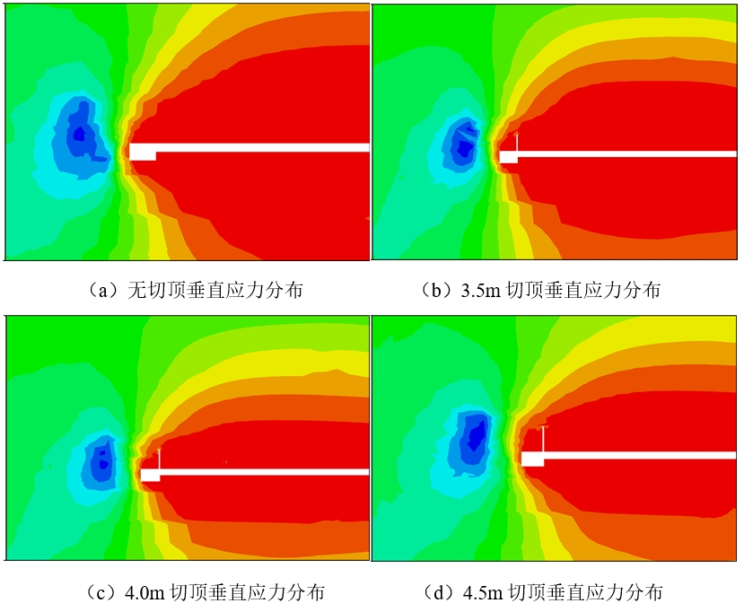 圖2 不同切頂高度下垂直應力分布圖