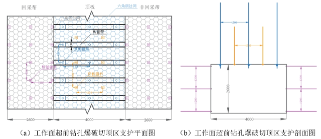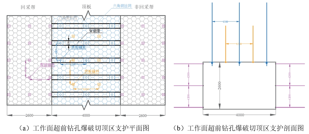 (一)工作面超前鉆孔爆破切頂區支護設計