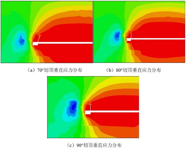圖3 不同切頂角度下垂直應力分布圖
