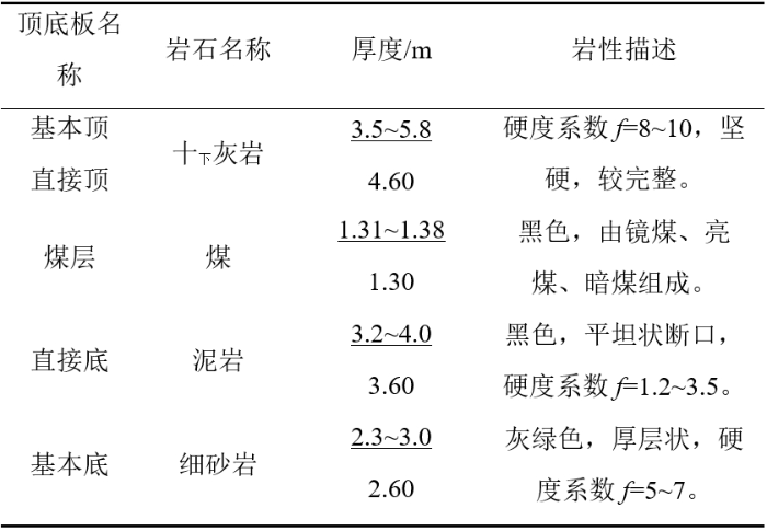表1 21602工作面主要圍巖情況