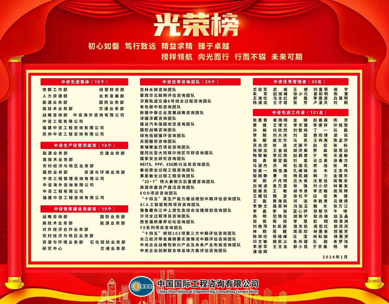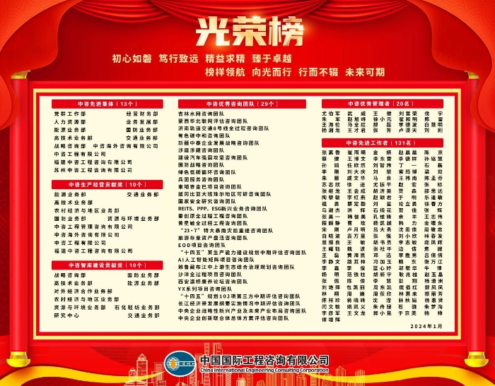 闊步新征程,昂首向未來。1月30日,中咨公司召開2024年度工作會議。會議的主要任務是,以習近平新時代中國特色社會主義思想為指導,全面貫徹黨的二十大、二十屆二中全會精神和二十屆中央紀委三次全會精神,落實中央經濟工作會議部署和中央企業負責人會議要求,全面總結公司2023年工作,聚焦新時代新征程面臨的新形勢新任務,謀劃下一階段落實好“五五戰略”的具體路徑,部署2024年重點任務,推動公司高質量發展再創新局面。 公司黨委書記、董事長、總經理茍護生作《扎實推動“五五戰略”落地生根 奮力開創公司高質量發展新局面》主題報告。黨委委員、總會計師王麗靜主持會議。黨委委員、中咨戰略研究院執行院長竇皓宣讀《公司黨委關于表彰2023年度先進集體和先進個人的決定》。黨委委員、副總經理潘小海傳達中央經濟工作會議、中央企業負責人會議、全國發展和改革工作會議精神。黨委委員、副總經理沈浩傳達國務院國資委黨風廉政建設和反腐敗工作會議精神。國家審計署企業審計八局有關同志以及公司外部董事楊愛民、余德輝出席會議。會議期間還表彰了2023年度先進集體和個人以及簽訂2024年度經營考核責任書。 會議指出,2023年,公司深入開展習近平新時代中國特色社會主義思想主題教育,堅定不移落實“五五戰略”,加快建設國家高端智庫和世界一流咨詢機構,在服務中央科學決策和國家重大戰略方面做出突出貢獻,核心功能和核心競爭力更加凸顯,圓滿完成國資委各項考核指標。公司咨詢服務工作得到委托方高度認可,收到中央部委、地方政府、大型企事業單位等各方感謝信240封,100多名個人和團隊受到表揚。公司榮獲菲迪克“卓越工程項目獎”“優秀工程項目獎”各1項、魯班獎4項、國家優質工程獎9項,獲得“2023年度誠信經營守信踐諾標桿企業”榮譽稱號。 會議從九個方面系統回顧過去一年的主要業績。智庫建設勇攀高峰,上報決策咨詢成果數量、質量雙雙再創歷史新高;服務國家戰略做出新貢獻,在服務國家重大戰略規劃評估、國家重大工程建設、高水平支撐現代化產業體系建設和科技自立自強、踐行綠色發展理念、助力“一帶一路”行穩致遠、保障國防軍工建設、服務國資央企高質量發展等方面展現擔當作為;生產經營逆勢上揚,“一利”穩定增長,“五率”持續優化;業務結構持續優化,新興業務穩步增長,總部部門與所屬企業協同效應更加突出,“6+1”全過程咨詢產業鏈條進一步完善;深化改革實現新突破,形成新時期推動公司高質量發展的“五五戰略”,新一輪改革深化提升行動高質量起步,董事會運行更加規范、作用更加突出;建設世界一流咨詢機構邁出堅實步伐,在對標世界一流價值創造、豐富資質體系、品牌引領、區域化布局、數字化運營、標準化建設、財務信息化、干部選任、專家隊伍建設、智庫成果發布等方面取得新成效;風險內控工作持續加強,推進審計全覆蓋,健全合規管理體系,安全生產形勢總體穩定;黨的建設開創新局面,在主題教育中一體推進理論學習、調查研究、推動發展、檢視整改,宣傳思想、工會、統戰、團青等各項工作邁上新臺階;全面從嚴治黨縱深推進,突出政治監督,做實日常監督,加強作風建設,開展紀檢干部隊伍教育整頓和巡查式、回訪式、機動式巡視,黨風廉政建設和反腐敗工作走深走實。公司各項工作全面推進,呈現穩中求進、進中向好的發展態勢。 茍護生表示,在經濟下行壓力大、改革發展任務重、矛盾風險挑戰多的背景下,公司取得發展成績殊為不易,根本在于以習近平同志為核心的黨中央堅強領導,是國務院的信任和各部委大力支持、國資委直接指導的結果,是全體干部職工團結拼搏的結果。新的一年要延續良好勢頭,就要深入研判當前形勢,科學謀劃下步工作??傮w而言,機遇大于挑戰,有利條件強于不利因素。中央重視智庫建設、支持咨詢機構規范健康發展,工程咨詢服務被列為鼓勵類產業,公司發展前景光明,要抓住有利時機、利用積極因素、加快發展步伐、再創輝煌業績。 茍護生指出,要增強戰略主動,采取“三步走”策略,即三年強基礎,到“十四五”末,公司高質量發展的基礎更加堅實;五年時上臺階,到“十五五”中期,公司新發展格局更加完善;十年時見輝煌,到公司成立50周年前后,國家高端智庫和世界一流咨詢機構基本建成。這個“3510”步驟與國家2035年基本實現社會主義現代化的宏偉目標保持同步。 茍護生強調,要實施“強基提質”八個專項行動,即組織優化行動、業務創新行動、管理提升行動、質量品牌提升行動、標準建設行動、數智咨詢行動、人才強企行動、文化塑造行動,確?!拔逦鍛鹇浴痹趯嵺`中得到高質量貫徹執行。 會議指出,2024年是中華人民共和國成立75周年,是實施“十四五”規劃的關鍵之年。公司工作的總要求是:以習近平新時代中國特色社會主義思想為指導,全面貫徹落實黨的二十大、二十屆二中全會精神和二十屆中央紀委三次全會精神,堅持穩中求進的工作總基調,完整、準確、全面貫徹新發展理念,按照中央經濟工作會議、中央企業負責人會議部署,加快推動國家高端智庫和世界一流咨詢機構建設,以八個“強基提質”專項行動推動“五五戰略”有效實施,提升公司價值創造能力,扎實做好高端智庫建設、服務國家戰略、全面深化改革、質