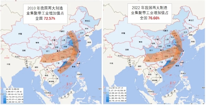 圖4 2010-2022年我國兩大制造業集聚帶工業增加值占比