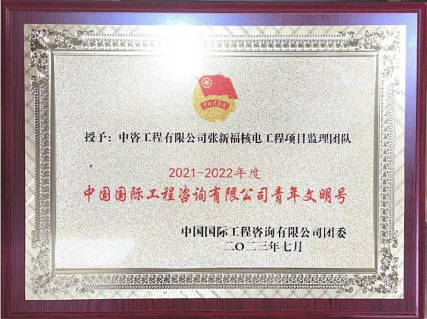 百煉成鋼,載譽而歸。張新福團隊被中咨公司黨委授予2021—2022年度“青年文明號”,張新福榮獲2022年度“中咨先進工作者”稱號,團隊成員丁杰被評為公司“青年崗位能手”。在2022年度太平嶺核電“文明施工之星”知識競賽中,張新福團隊榮獲“金獎”,丁杰榮獲“一等獎”。