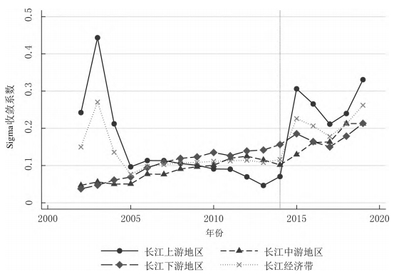 摘要:正確認識和研判長江經濟帶科技創新效率的變化特征有助于更好地發揮科技創新對經濟高質量發展的支撐作用。基于2002-2019年長江經濟帶沿線11省份的面板數據,利用GS-SBM模型測度了長江經濟帶的科技創新效率,分別使用Malmquist指數、Dagum基尼系數以及 Sigma收斂、Beta絕對(條件)收斂考察了長江經濟帶科技創新效率的演變、空間差距和收斂性。研究發現:長江經濟帶及其上、中、下游地區科技創新效率整體上而言保持提升趨勢,且存在較大空間差距,超變密度對總體差距的貢獻最大;長江經濟帶及其上、中、下游地區科技創新效率幾乎不存在Sigma收斂和Beta絕對(條件)收斂;長江經濟帶發展戰略實施之后,科技創新效率提高得更加明顯,并從技術進步與技術效率的雙重驅動轉變為更多地依靠技術進步,科技創新效率的擴散狀態更強。基于此,研究認為要科學辯證地看待區域科技創新效率的差距,發揮長江經濟帶發展戰略和科教興國戰略在提升和平衡科技創新效率中的積極作用。 關鍵詞:長江經濟帶;科技創新效率;時空格局;收斂性 科技創新是長江經濟帶建設現代經濟體系、實現高質量發展的戰略支撐,是推動中國式現代化的第一力量。經過多年的對外開放,長江經濟帶已經融入了全球分工體系,但是大量本土企業被鎖定在產業鏈或者產品價值鏈的中低端,必須依靠科技創新才能實現在全球價值鏈上的攀升。同時,雖然長江經濟帶是我國重要的現代工業集聚地,工業基礎扎實、規模龐大,但是關鍵核心技術仍然缺乏,尤其是在以美國為首的西方國家對華遏制和挑戰的情況下,需要以科技創新來解決“卡脖子”問題,加快實現高水平科技自立自強。此外,為了加快經濟增長,長江經濟帶沿線多個省市推進工業化和城鎮化,忽略了人與自然的和諧共生,導致長江沿線部分地區環境污染問題突出,生態功能退化,碳排放持續增加。基于此,無論是貫徹落實習近平總書記“共抓大保護、不搞大開發”的指示精神,還是如期或者率先實現碳達峰碳中和目標,都要求長江經濟帶沿線省市轉變發展模式,走生態優先、綠色低碳發展之路,發揮科技創新在經濟綠色轉型中的支撐作用。 由于科技創新本質上來講是一種知識生產過程,所以就存在科技創新成果的產出與科技創新資源和要素的投入比問題,即科技創新效率的高低,這種高低變化分別反映在時間和空間上差距:一是在某一區域內科技創新資源和要素投入的持續增長,并沒有帶來相應的科技創新產出數量增長或者質量的提升;二是將同樣的科技創新資源和要素投入到不同區域,其科技創新產出數量或者質量顯著不同。這兩個維度分別刻畫了區域內與區域間科技創新效率的差別,不僅影響了科技創新資源和要素的配置,而且也影響了科技創新對經濟發展的貢獻程度,成為區域發展不平衡的底層因素之一,給區域協調發展帶來了較大的挑戰。除此之外,我國依然是世界上最大的發展中國家,科技創新資源較歐美發達國家而言則相對稀缺,這就需要通過提高科技創新效率來實現科技創新資源的最大化利用。 為了更加充分和有效地利用長江經濟帶科技創新資源,促進長江經濟帶經濟高質量發展,就必須正視科技創新效率在時間和空間上的演變,科學認識科技創新效率向高水平收斂的機制,因此,不僅要考察長江經濟帶科技創新效率的動態變化規律,還需要充分考慮科技創新效率的區域不平衡問題,即其上、中、下游地區之間以及各自內部科技創新效率的差距變化。本文首先基于數據包絡方法測度了長江經濟帶及其上、中、下游地區的科技創新效率,分解了導致科技創新效率變化的驅動因素,然后利用dagum基尼系數考察了長江經濟帶及其上、中、下游地區的科技創新效率的空間差距及其形成來源,接著分別采用Sigma收斂和Bate收斂來檢驗了長江經濟帶及其上、中、下游地區的科技創新效率的收斂性,最后給出了相關對策啟示。 一、文獻綜述 多年來,我國一直高度重視科技創新在國民經濟發展中的重要作用,將推動科技創新做為黨治國理政的核心內容之一。在中國共產黨第二十次全國代表大會報告提出“必須堅持科技是第一生產力、人才是第一資源、創新是第一動力”。鑒于此,有學者圍繞我國科技創新問題從多個角度展開了研究,取得了一批較高質量的成果。這里針對本文的研究目的,主要對科技創新效率方面的相關研究進行了綜述。 從現有研究看,針對科技創新效率的測度方法主要是隨機前沿模型(SFA)和數據包絡分析(DEA)。由于SFA 模型屬于參數方式,所以在使用它測度科技創新效率時不僅要事先明確投入變量與產出變量之間的函數關系,而且對變量的平穩性和變量之間的協整關系要求較高。DEA方法采用線性規劃技術測算效率,除了不需要事先確定生產函數的形式,還能夠完成多投入多產出情形下的科技效率測度,實現不同樣本點與效率最優點之間的比較,因此被廣泛地采用。譬如,劉愛芹等[1] 、孫凱[2] 、李婧等[3] 、李南等[4] 、李政等[5]利用傳統的徑向DEA模型對不同區域的創新效率進行了測算,但傳統徑向DEA模型存在松弛變量、跨期比較和有效率決策單元效率比較等諸多問題,影響了效率測度結果的可靠性,從而推動了新拓展的DEA方法在測度科技創新效率上的應用。其中,王春枝等[6]利用非徑向超效率DEA模型測度了我國區域創新效率的動