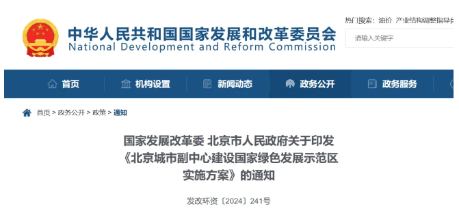展首都綠色之翼 創(chuàng)全國示范之先 高質(zhì)量建設(shè)國家綠色發(fā)展示范區(qū) ——《北京城市副中心建設(shè)國家綠色發(fā)展示范區(qū)實(shí)施方案》解讀 張英健 木其堅(jiān) 近日,經(jīng)國務(wù)院同意,國家發(fā)展改革委、北京市人民政府聯(lián)合印發(fā)《北京城市副中心建設(shè)國家綠色發(fā)展示范區(qū)實(shí)施方案》(發(fā)改環(huán)資〔2024〕241號(hào),以下簡(jiǎn)稱《實(shí)施方案》),明確了北京城市副中心綠色高質(zhì)量發(fā)展、打造人與自然和諧共生樣板的工作路徑,為北京城市副中心有序承接中心城區(qū)非首都功能疏解、推進(jìn)首都城市功能重組和布局優(yōu)化,建設(shè)和諧、宜居、美麗的綠色發(fā)展高地繪制了總體藍(lán)圖,對(duì)于推動(dòng)北京“新兩翼”建設(shè)取得更大突破,促進(jìn)京津冀協(xié)同發(fā)展具有重要而深遠(yuǎn)的意義。 1、踐行習(xí)近平生態(tài)文明思想是北京城市副中心建設(shè)的根本遵循 規(guī)劃建設(shè)北京城市副中心,與雄安新區(qū)形成北京的“新兩翼”,是以習(xí)近平同志為核心的黨中央作出的重大決策部署,是千年大計(jì)、國家大事。早在2016年北京城市副中心研究部署規(guī)劃階段,習(xí)近平總書記就強(qiáng)調(diào),北京城市副中心建設(shè)要牢固樹立并貫徹落實(shí)創(chuàng)新、協(xié)調(diào)、綠色、開放、共享的發(fā)展理念,構(gòu)建藍(lán)綠交織、清新明亮、水城共融的生態(tài)城市布局,著力打造國際一流和諧宜居之都示范區(qū),建成綠色城市、森林城市、海綿城市、智慧城市。2021年8月,國務(wù)院印發(fā)《關(guān)于支持北京城市副中心高質(zhì)量發(fā)展的意見》,明確提出在北京城市副中心建設(shè)國家綠色發(fā)展示范區(qū),堅(jiān)持將綠色發(fā)展理念融入經(jīng)濟(jì)社會(huì)發(fā)展全過程。近年來,京津冀3省市切實(shí)履行主體責(zé)任,中央有關(guān)部門和單位大力支持配合,疏解北京非首都功能初見成效,北京城市副中心高質(zhì)量發(fā)展步伐加快,“軌道上的京津冀”加速形成,北京城市副中心美麗宜居水平大幅提升,科技創(chuàng)新和產(chǎn)業(yè)融合發(fā)展水平持續(xù)提升,人民群眾獲得感顯著增強(qiáng)。實(shí)踐證明,黨中央關(guān)于北京城市副中心的安排部署,特別是堅(jiān)持將綠色發(fā)展作為城市發(fā)展底色的決策部署科學(xué)合理、順應(yīng)民心,符合我國新時(shí)代高質(zhì)量發(fā)展需要。 北京城市副中心肩負(fù)著有序承接中心城區(qū)非首都功能疏解、推進(jìn)首都城市功能重組和布局優(yōu)化、探索人口經(jīng)濟(jì)密集地區(qū)優(yōu)化開發(fā)模式的艱巨任務(wù)。與雄安平地建新城不同,北京城市副中心本身已有城市建設(shè)的基礎(chǔ),如何在既有基礎(chǔ)上脫胎換骨、綠色升級(jí),打造一個(gè)不一樣的和諧宜居之城,關(guān)鍵是必須牢牢把握住習(xí)近平生態(tài)文明思想這個(gè)最核心的思想武器。《實(shí)施方案》認(rèn)真貫徹黨中央、國務(wù)院決策部署,時(shí)時(shí)處處踐行綠水青山就是金山銀山理念,牢固樹立節(jié)約集約循環(huán)利用的資源觀,以實(shí)現(xiàn)碳達(dá)峰碳中和目標(biāo)為引領(lǐng),將綠色發(fā)展理念融入北京城市副中心經(jīng)濟(jì)社會(huì)發(fā)展各領(lǐng)域全過程,協(xié)同推進(jìn)降碳、減污、擴(kuò)綠、增長,擘畫了北京城市副中心的發(fā)展藍(lán)圖,描繪了青山常在、綠水長流、空氣常新的美麗畫卷,印發(fā)后必將成為北京城市副中心綠色高質(zhì)量發(fā)展的重要指南。 2、做好北京城市副中心綠色發(fā)展六篇示范文章 北京城市副中心建設(shè)國家綠色發(fā)展示范區(qū),不是戴帽子、做盆景,是要真正解題破題,探索既有建成區(qū)綠色低碳升級(jí)的可行路徑,從而為首都乃至全國各個(gè)地區(qū)提供可推廣、可復(fù)制的經(jīng)驗(yàn)。《實(shí)施方案》明確,將聚焦建筑、交通、產(chǎn)業(yè)三大關(guān)鍵領(lǐng)域和能源、生態(tài)、文化三大重點(diǎn)支撐開展綠色示范,統(tǒng)籌產(chǎn)業(yè)結(jié)構(gòu)調(diào)整、污染治理、生態(tài)保護(hù)、應(yīng)對(duì)氣候變化,協(xié)同推進(jìn)降碳、減污、擴(kuò)綠、增長,推動(dòng)北京城市副中心經(jīng)濟(jì)社會(huì)各方面和全過程綠色低碳發(fā)展。綠色建筑示范方面,統(tǒng)籌考慮新建建筑建造、既有建筑改造和智能建造應(yīng)用,推進(jìn)實(shí)施工程建設(shè)全過程綠色建造,大力推行綠色建筑和超低能耗建筑,加大智能建造應(yīng)用力度,推動(dòng)建筑領(lǐng)域全過程節(jié)約資源和減少碳排放,實(shí)現(xiàn)建筑領(lǐng)域綠色化、品質(zhì)化發(fā)展和數(shù)字化、智能化升級(jí)。綠色交通示范方面,建設(shè)高效綠色的軌道交通,完善生態(tài)友好的道路交通,推進(jìn)綠色智能交通管理,推動(dòng)區(qū)域綠色低碳交通一體化,構(gòu)建承載輻射功能突出、便捷暢達(dá)、人本生態(tài)的現(xiàn)代綜合交通體系,為北京城市副中心與河北省三河市、大廠回族自治縣、香河縣一體化高質(zhì)量發(fā)展提供重要支撐。綠色產(chǎn)業(yè)示范方面,推進(jìn)數(shù)字化智能化綠色化融合發(fā)展,著力提升產(chǎn)業(yè)