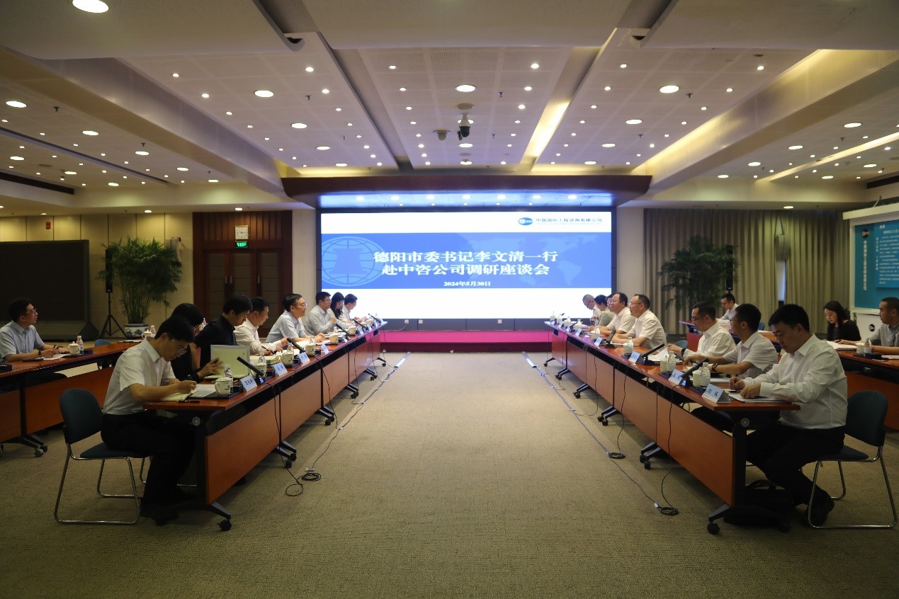 2024年5月30日上午,中咨公司黨委書記、董事長、總經理茍護生在中咨大廈會見德陽市委書記李文清一行,雙方就深化務實合作、促進共贏發展開展座談交流。
