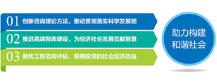在國家全面建設(shè)小康社會(huì)的進(jìn)程中積極貢獻(xiàn)我們的力量,在國家經(jīng)濟(jì)社會(huì)發(fā)展戰(zhàn)略的制定和實(shí)施中不斷奉獻(xiàn)我們的智慧,在國家投資決策上努力提供科學(xué)的依據(jù),以凝聚思想、優(yōu)質(zhì)高效的咨詢成果助力社會(huì)民生事業(yè),用心做好服務(wù),爭做工程咨詢行業(yè)的優(yōu)秀企業(yè)公民。 |
